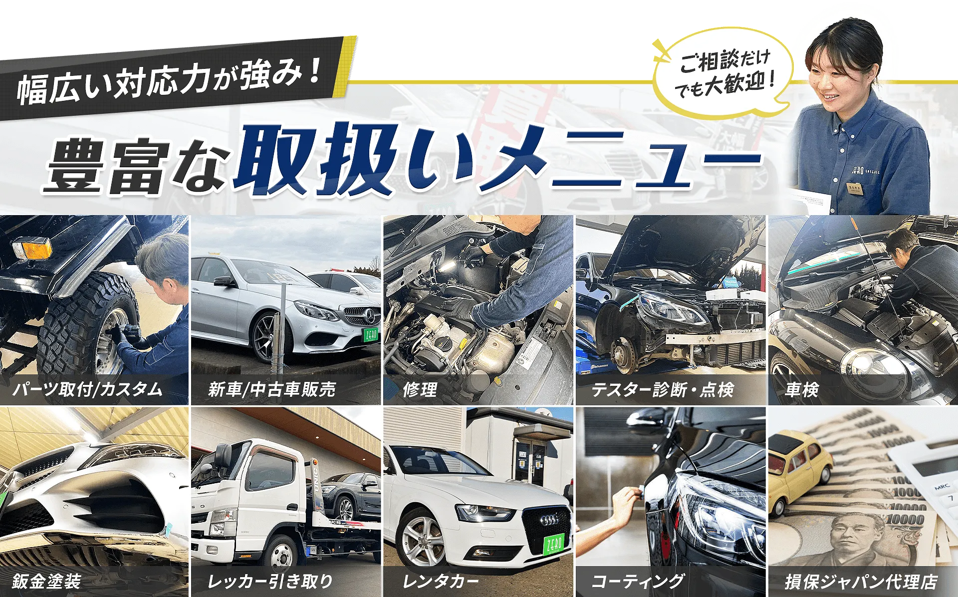 車種不問で、ほぼ100%のパーツ取付に対応します。