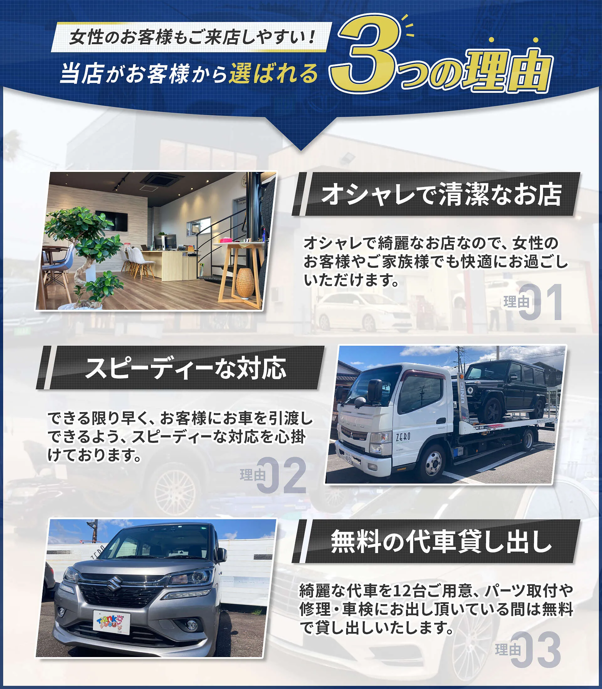 カスタムパーツの取付もお任せください。