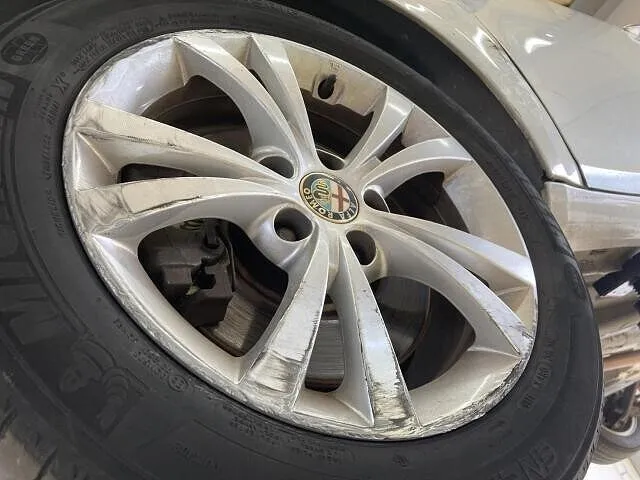 宮崎市 アルファロメオ ジュリエッタ 左フロント事故修理 右フロントフェンダー交換 右ドア板金塗装 ホイルリペア 自社レンタカー 保険対応【ゼロピット】 宮崎県宮崎市 西都市 都城市 日向市 延岡市 小林市 ゼロエンタープライズ
