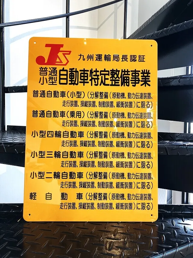 お客様のお車での分解整備を行うことを国土交通省 運輸局長から認証されている工場です。分解整備(安全上重要な部分の整備)や12ヶ月点検整備、24ヶ月点検整備を、自分の工場で行うことができます。