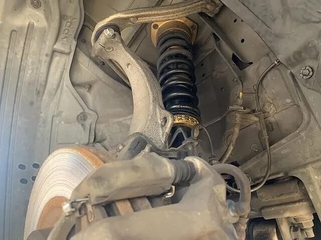 車高調新品&全長調整式で、乗り心地もずいぶん良くなると思います。車高はあまり落としすぎないようとのご依頼でしたので、この高さで設定しました。